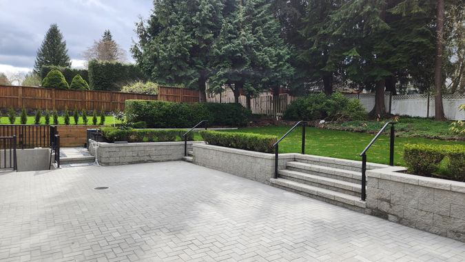 We worked with our clients to build a new driveway, grassy play area, deck and stairs, front yard, and fences for this new build. Our clients needed acccess to the back of the property for their garage and an area to park and play. We worked with the build team to create a terraced yard and give it a park like feel.